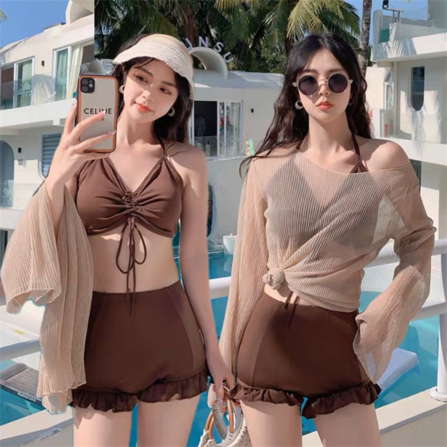 黒 ブルー ブラウン ピンクパッド付き 水着 体型カバー ワンピース 長袖3点セット レディース 通販 おしゃれ レディース水着 20代 30代 40代