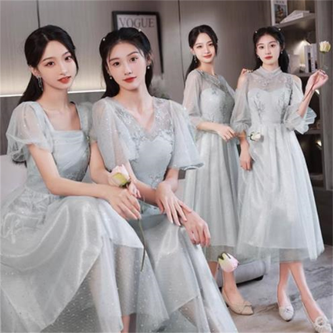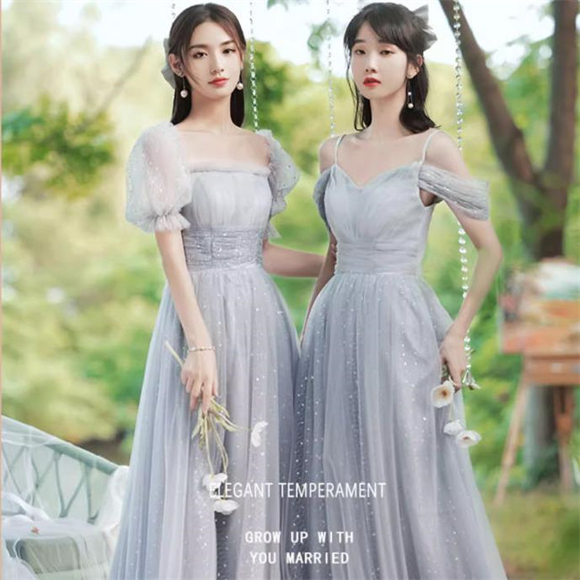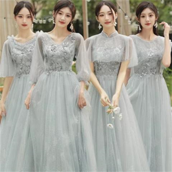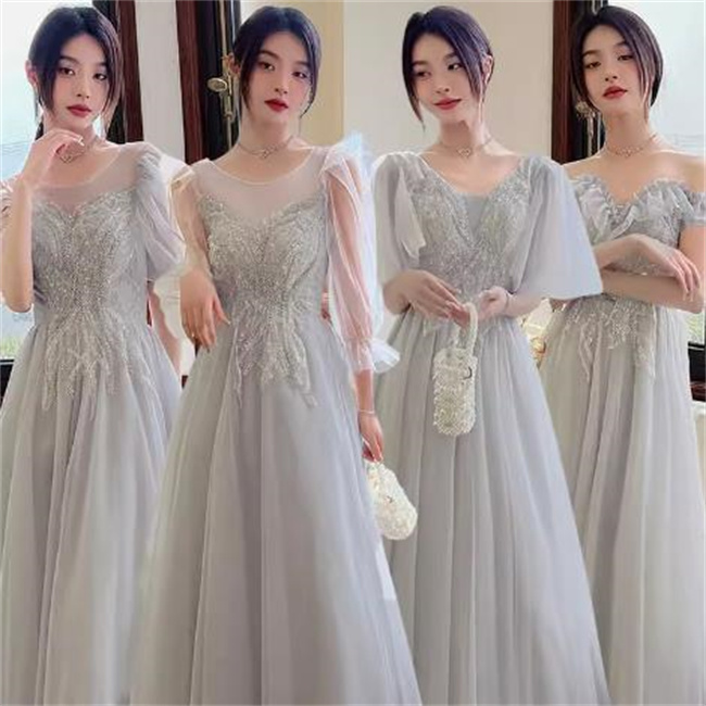グレー4デザイン ブライズメイドドレスパーティードレスワンピース二次会演出司会結婚式お呼ばれ ロングドレスマキシ丈ブライズメイドドレス二次会ドレスフォーマルドレスラメキラキラ