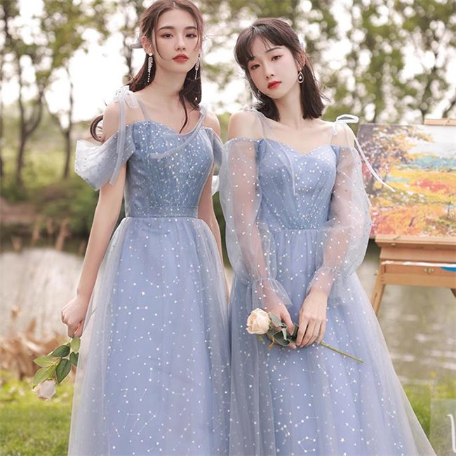 ブルー4デザイン ブライズメイドドレスパーティードレスワンピース二次会演出司会結婚式お呼ばれ ロングドレスマキシ丈ブライズメイドドレス二次会ドレスフォーマルドレスラメキラキラ
