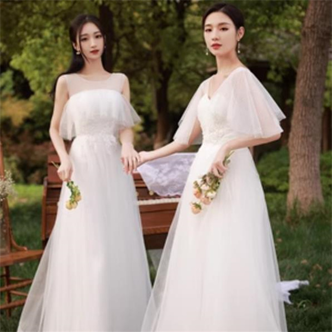 ホワイト ウェディングドレスAライン ロングドレス イブニングドレスノースリーブトレーン丸襟 ファスナータイプxs~xlWedding