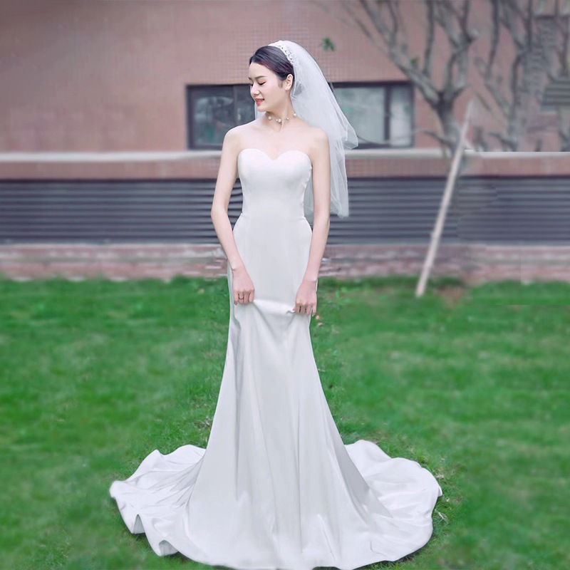 ホワイト ウェディングドレスマーメイドトレーンビスチェロングドレス イブニングドレスxs~xlWedding Dressお花嫁結婚式旅行撮影演出レディースウェディングドレスエレガントパーティードレス
