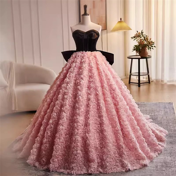 ブラック+ピンクビスチェ パーティードレスカラードレスティアードスカート 二次会ドレス フォーマルドレス二次会 前撮り ドレス ウェディングドレス 二次会 2次会 成人式 同窓会 謝恩会 大学生 服装