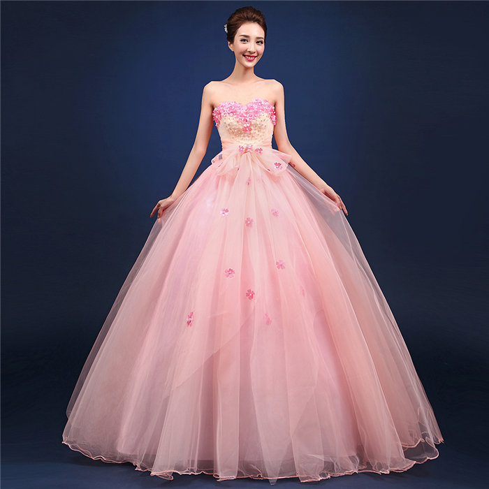 花柄ロングドレスパーティードレス ワンピース カラードレスピンクビーズ瓣二次会 演奏会 披露宴 結婚式 発表会