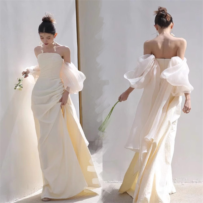 シャンパンウェディングドレスラインビスチェ ロングドレス ウェディングドレス パーティードレス二次会ドレスブライダル撮影 2 3レディースドレスボレロ風