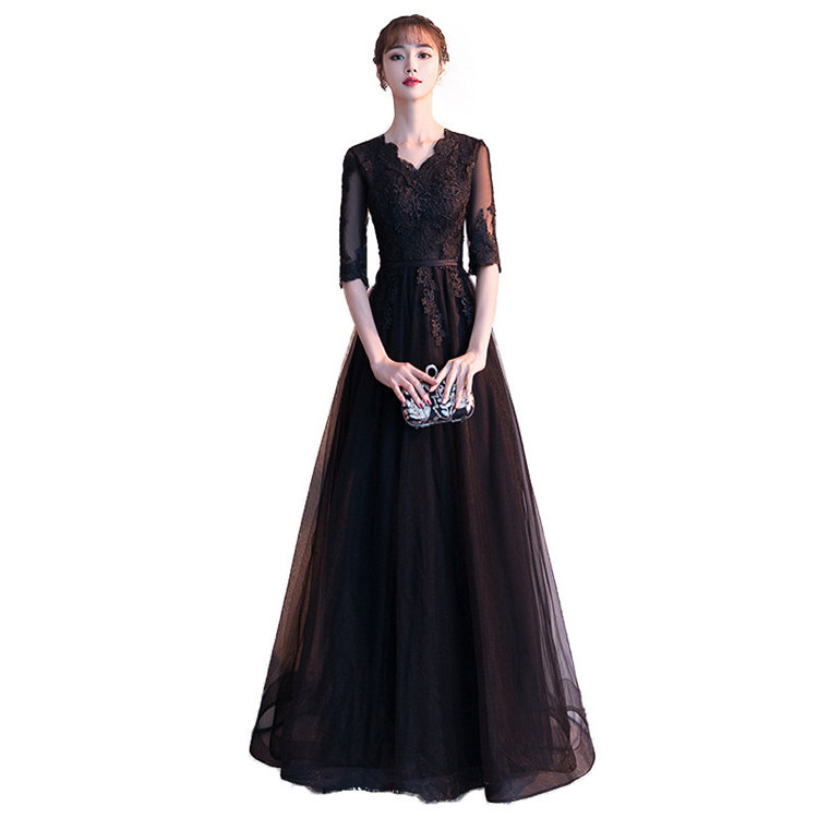 レッド ワイン ホワイト ブラック グレー総レース七分袖二次会ドレス パーティードレスロングドレスロング丈フォーマルドレスマキシ丈ワンピース二次会演出司会 結婚式お呼ばれ忘年会司会エレガントレースファ