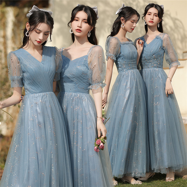 グレー パープル ピンク シャンパン6デザインパーティードレスワンピース二次会演出司会ブライズメイドドレス結婚式お呼ばれ マキシ丈ロングドレスブライズメイドドレスフォーマルドレス花びらロング丈特価ドレ