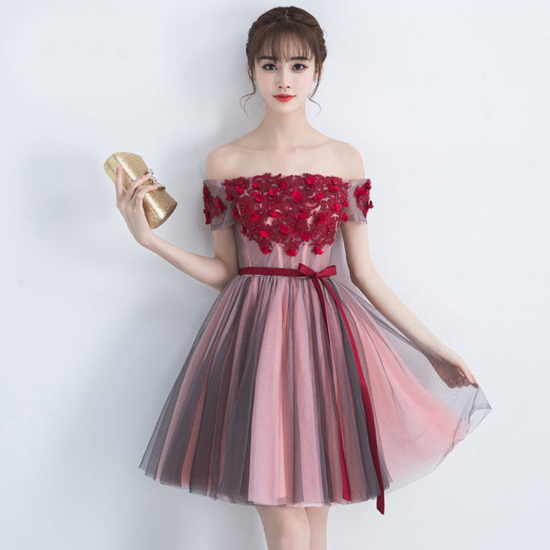 花柄ミニドレスパーティードレス ワンピース カラードレスショート丈二次会 演奏会 披露宴 結婚式 発表会