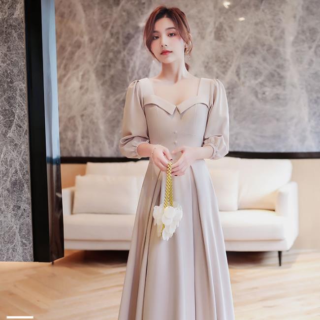 カーキ ブライズメイドドレスパーティードレスワンピース二次会演出司会結婚式お呼ばれ ロングドレスマキシ丈ブライズメイドドレス二次会ドレスフォーマルドレス