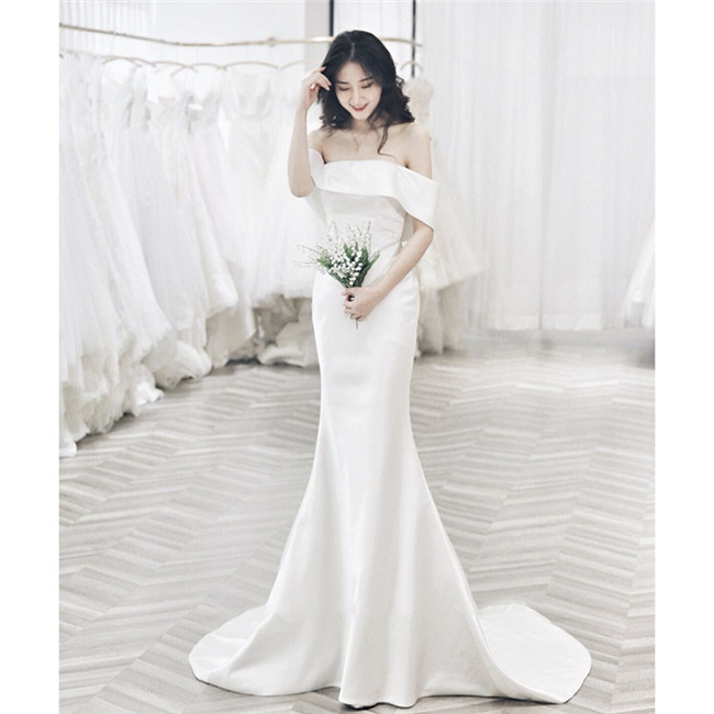 ホワイトオフショルダー ウェディングドレスラインファスナータイプトレーン レース 素地 ~ お花嫁結婚式旅行撮影演出レディースウェディングドレス