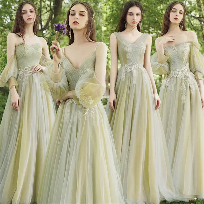 グリーン4デザインパーティードレスワンピース二次会演出司会ブライズメイドドレス結婚式お呼ばれ ロング丈ロングドレスマキシ丈ブライズメイドドレスフォーマルドレス