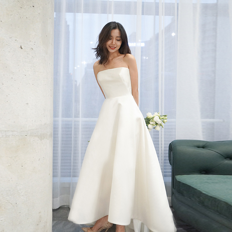 ホワイト ウェディングドレスAライン ミディアムドレス ウェディングドレスノースリーブミモレ丈 ファスナータイプxs~xlWedding