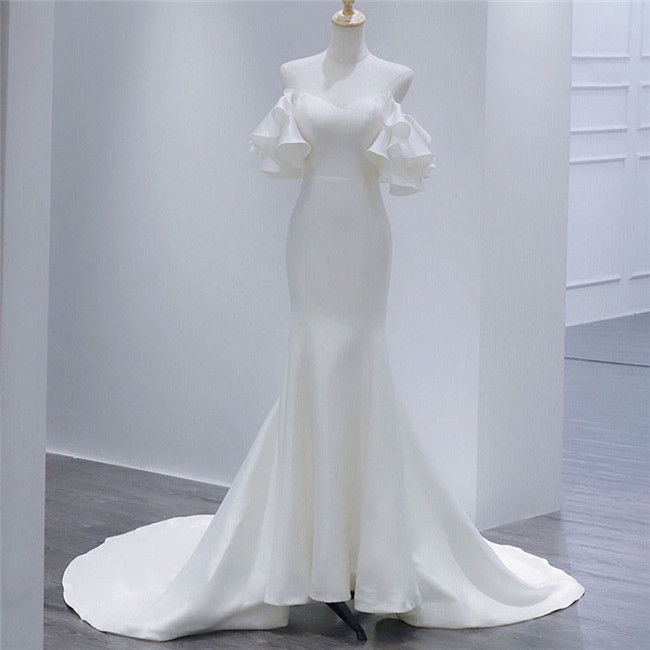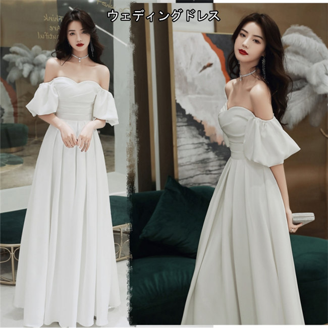 ロング ウェディングドレス 花嫁 結婚式 披露宴 フォマール ドレス シンプル マーメイド ウエディング ドレス オフショルダー チュール 可愛い ブライド ドレス 発表会 演奏会 ドレス 前撮り 後