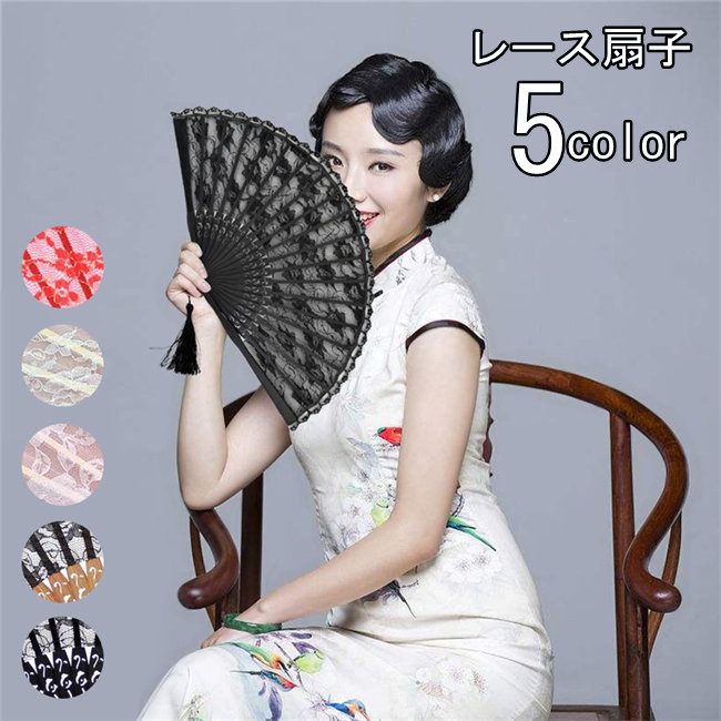 ブラックレース扇子 竹製和風 黒骨 高級感 折りたたみ式 工芸扇子 道具扇子 ダンス扇子 長さ22cm レディース 女性 プレゼント おしゃれ 普段使いに 婦人用 和服小物 夏 総レース エレガント演