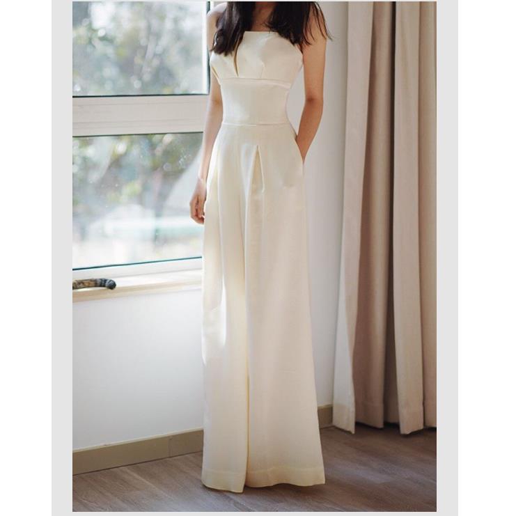ホワイト ウェディングドレスラインズボンパンツドレス ロングドレス ウェディングドレス レース 素地 ファスナータイプ~ お花嫁結婚式旅行撮影演出レディースウェディン