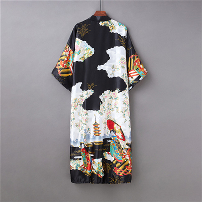 フリーサイズロング丈 夏祭り 夏恋 寺 法被 羽織り 半纏 はんてん 法被 ハッピ 長半纏 半天 袢天 半被 お祭り衣装 雅 和柄 羽織 和装 ユニセックス 浴衣 着物 はっぴスタイル かっこいい か