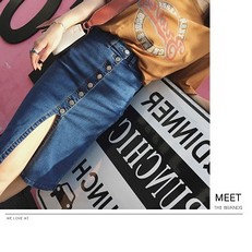 女性らしいシルエットのデニムスカートスリット入りで歩きやすい&セクシー前タンがオシャレ スッキリとしたライン韓国ファッションコーデしやすい ジーンズ生地