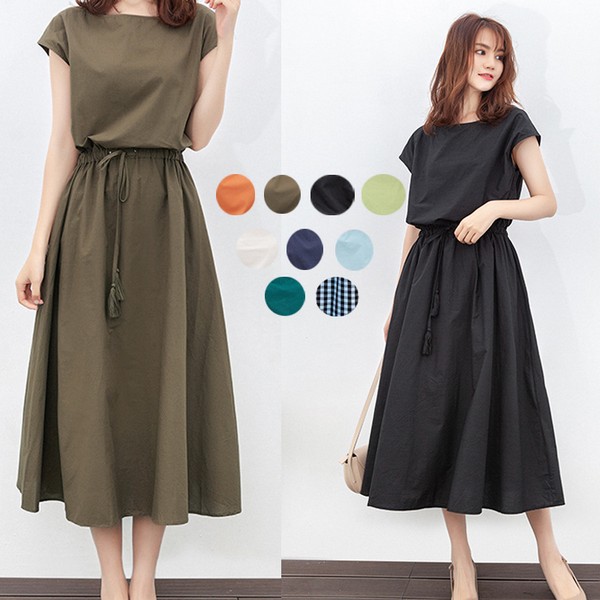 全9色 ワンピース レディース 春夏 マキシワンピース 半袖ワンピース 綿麻 無地 ライン フレアワンピース ロング 韓国風 オシャレ 着痩せ 結婚式ドレス