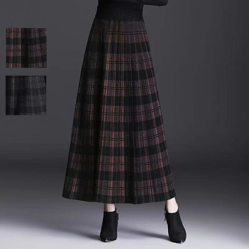 スカート レディース ニットスカート チェック柄スカート チェック柄 フレアスカート ボトムス Aライン フレア レディース ロングスカート ロング 膝下 ひざ下 大きいサイズ マキシスカート ハイウ