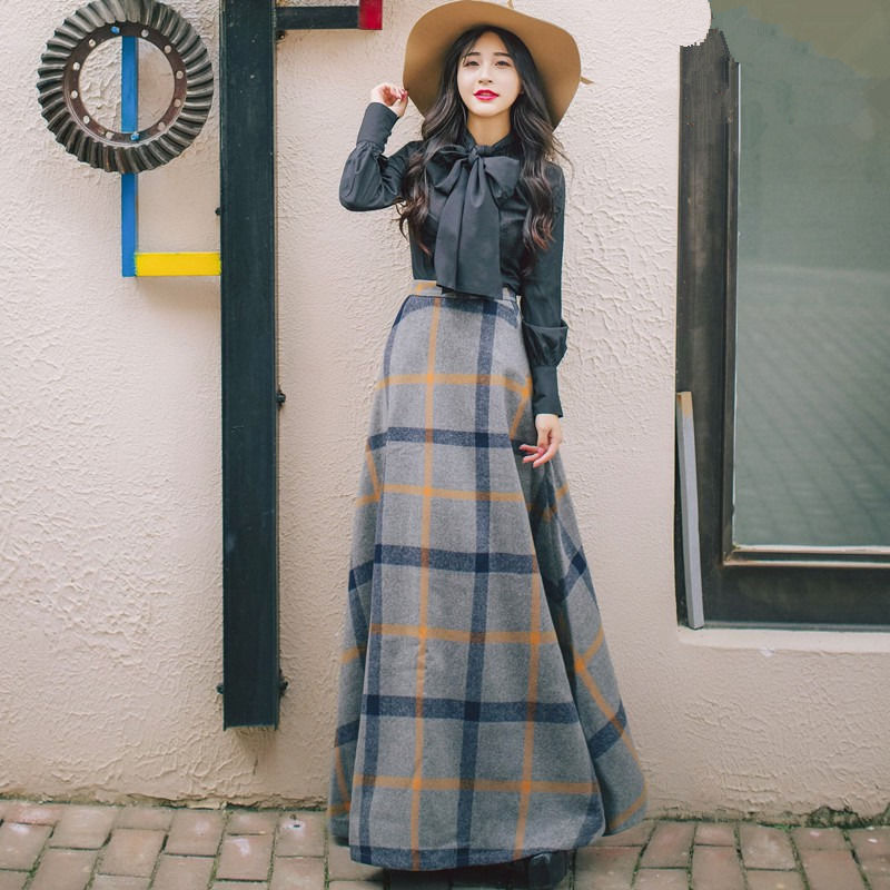 スカート レディース チェック柄 フレアスカート ウール混 ボトムス Aライン フレア レディース ロングスカート ロング マキシ 膝下 ひざ下 大きいサイズ ゆったり マキシスカート ハイウエストス