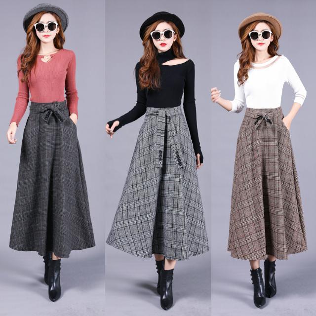 スカート レディース チェック柄 フレアスカート ウール混 ボトムス Aライン フレア レディース ロングスカート ロング 膝下 ひざ下 大きいサイズ ゆったり ハイウエストスカート 無地 春 秋 冬