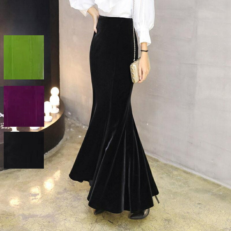 スカート マーメイドスカート ボトムス レディース ペンシルスカート ロングスカート ロング マキシスカート マキシ 膝下 ひざ下 ミモレ丈 無地 ハイウエストスカート ストレッチ オフィス 大人 秋