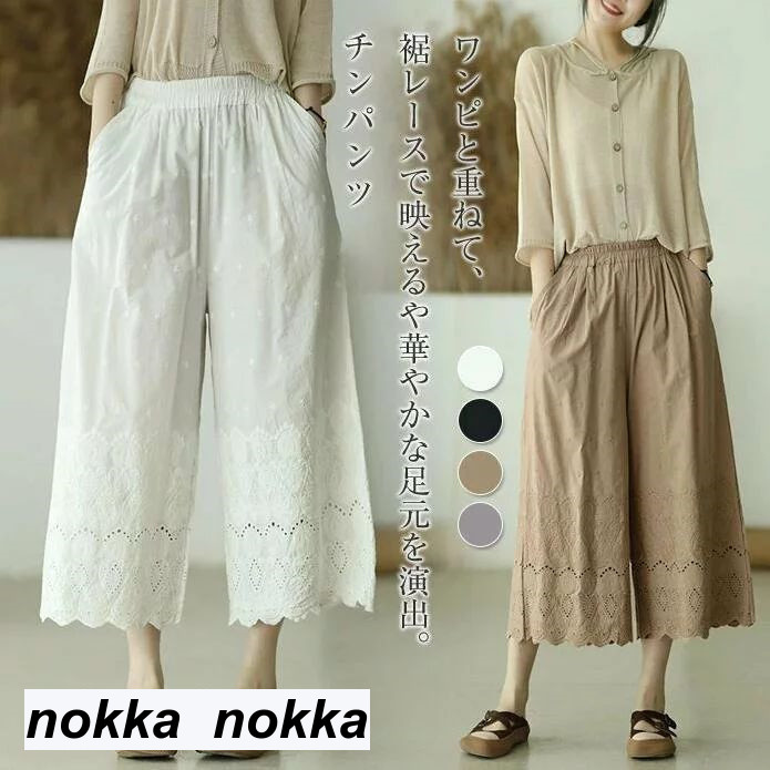 ペチパンツ ペチコート レディース パンツ スカート 透かし雕り ロング 刺繍 綿 コットン ゆったり インナー 重ね着 ペチコート おしゃれ ナチュラル ホワイトデー