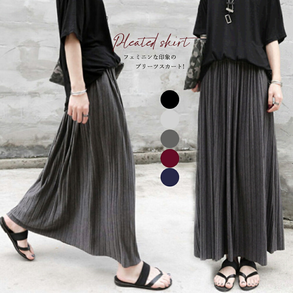 プリーツスカート レディース マキシスカート ロング丈 フレアスカート黒 ボトムス 春夏秋 新作 Aラインスカート