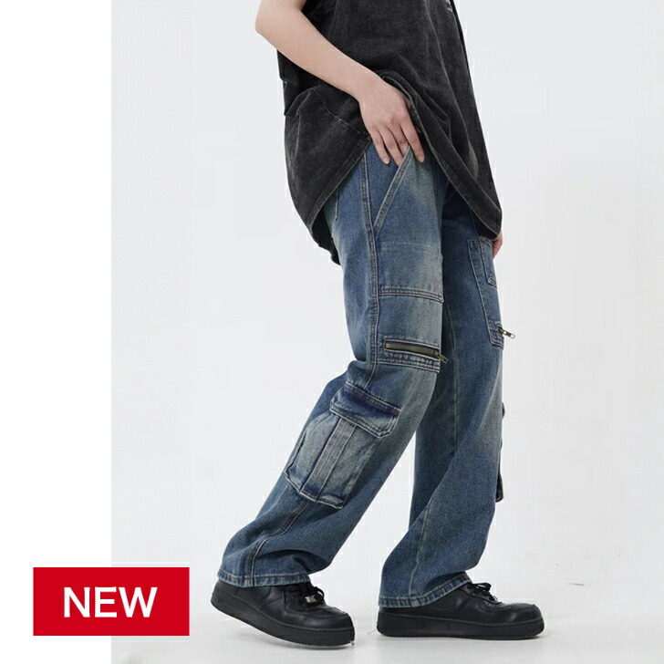 ロングデニム美脚脚長 マルチポケットジーパン レディース アメカジデニム かっこいい お洒落ストリートボトムス カジュアル
