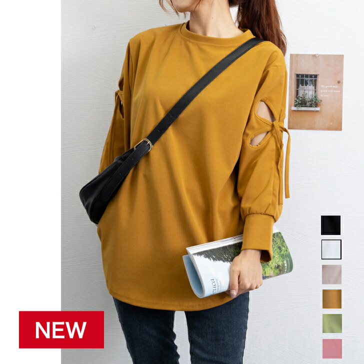 レディース 体型カバー ロングTシャツ クルーネック 春秋 カジュアル プルオーバー 無地 大人可愛い ロンティー