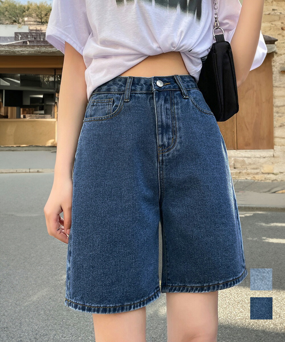 ハイウエスト カジュアルジーパン レディース 短パン 春秋夏 半ズボン着やせ 台形デニム 着回し ハーフパンツ ライン