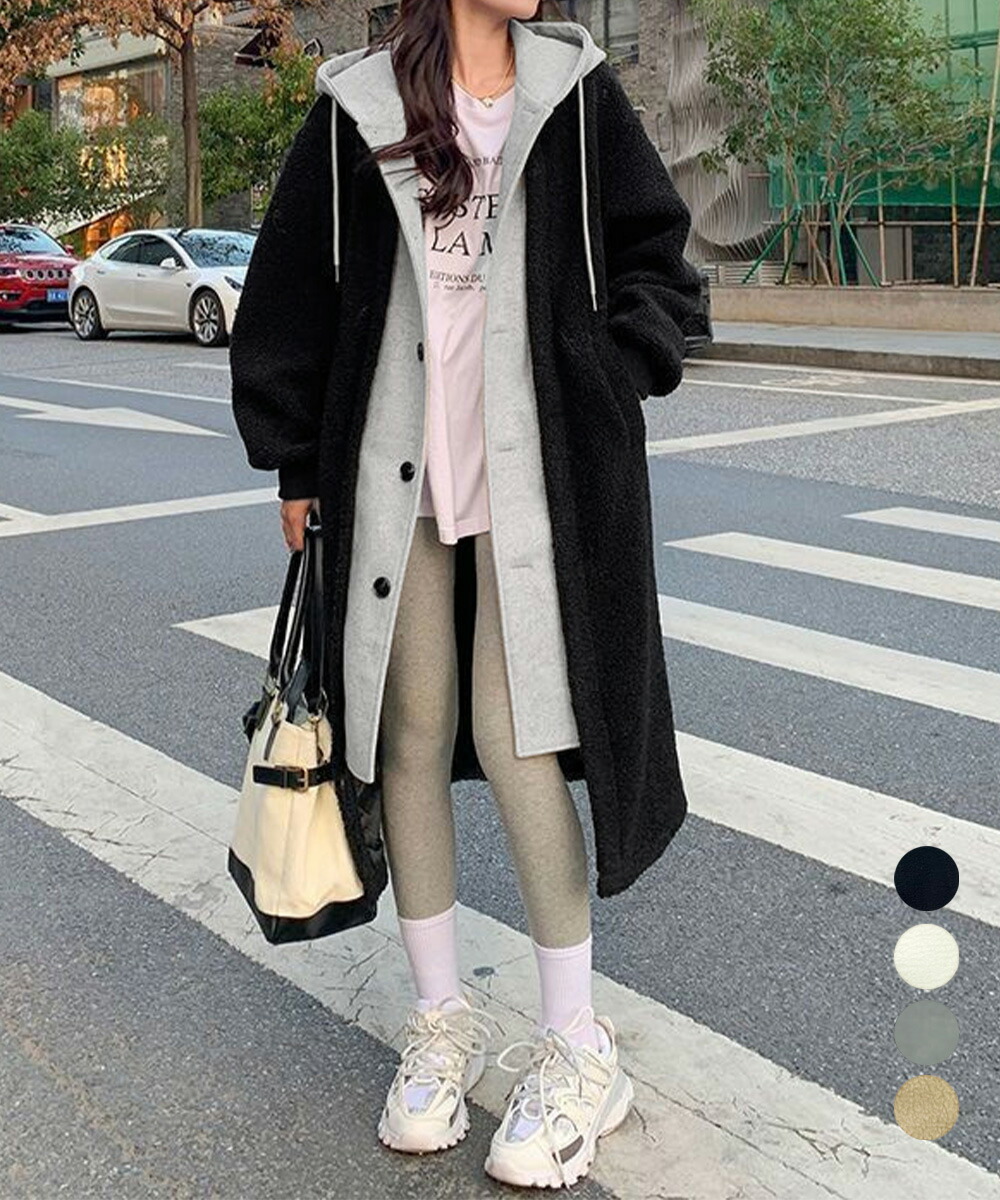 軽いフード付きボアジャケット 体型カバー 羽織り ゆったり ドロップショルダー 長袖アウター 秋冬服 カジュアル部屋着