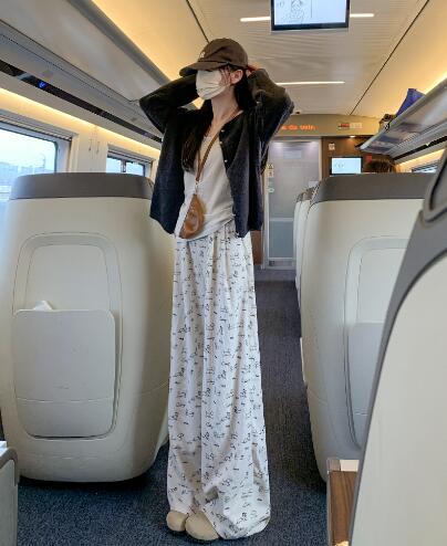 総柄パンツズボンボトムススウェット ロングワイド太い太め大きいサイズビッグジャージゆったりハイウエストポケット動きやすいダンス衣装ヒップホップレディースガールズカジュアルかわいい