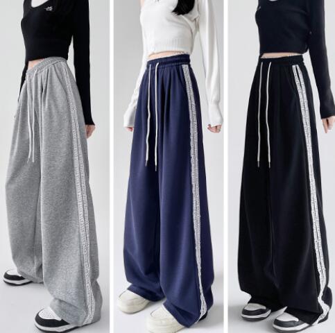 レースラインパンツズボンボトムススウェット ロングワイド太い太め大きいサイズビッグジャージゆったりハイウエストポケット動きやすいダンス衣装ヒップホップレディースガールズカジュアルかわいい
