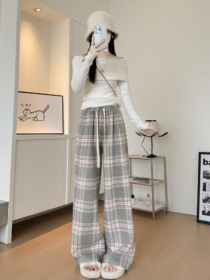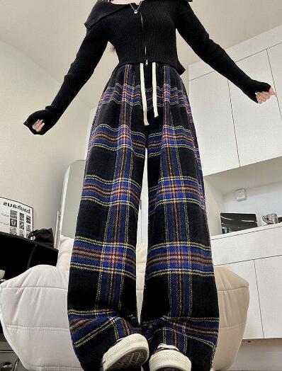 チェック柄パンツズボンボトムススウェット ロングワイド太い太め大きいサイズビッグジャージゆったりハイウエストポケット動きやすいダンス衣装ヒップホップレディースガールズカジュアル秋冬新品