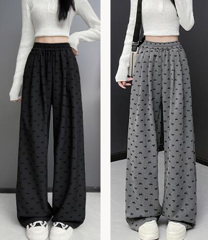 総柄リボン柄パンツズボンボトムススウェット ロングワイド太い太め大きいサイズビッグジャージゆったりハイウエストポケット動きやすいダンス衣装ヒップホップレディースガールズカジュアル秋冬新品