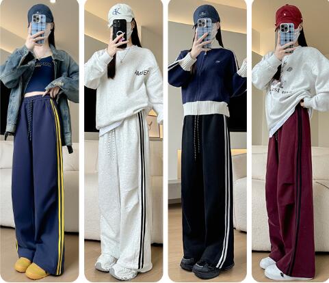 ラインパンツズボンボトムススウェット ロングワイド太い太め大きいサイズビッグジャージゆったりハイウエストポケット動きやすいダンス衣装ヒップホップレディースガールズカジュアル