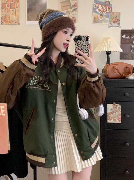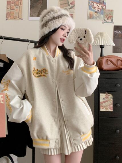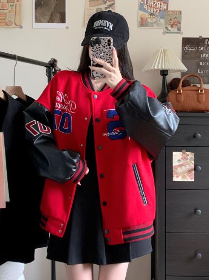 刺繍厚手防寒中綿スタジャンベースボールジャケット韓国系ファッション韓国ジャケットブルゾンジャンパーレディースメンズガールズダンス衣装ダンス発表会文化祭イベント個性的奇抜ストリートアウター