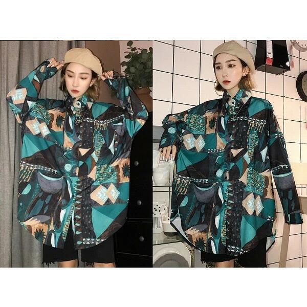 ブラウス シャツ ドルマンスリーブ プリント 切り替え バイカラー 配色 幾何学 エスニック 民族風 体型カバー 原宿系ファッション 韓国 ダンス 衣装 トップス レディース メンズ ヒップホップ