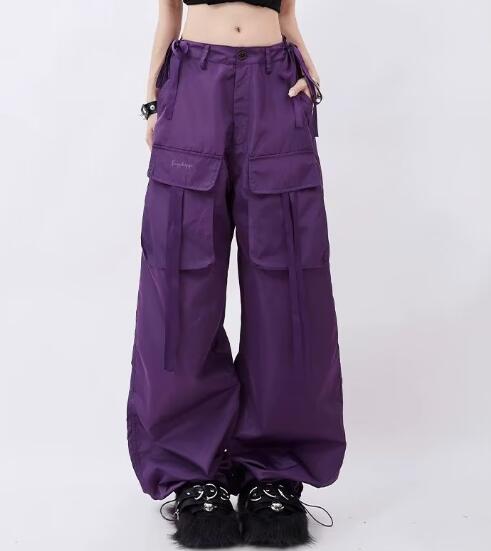 ♪S~2XL展開♪カーゴパンツパンツズボンボトムススウェット紫色 ロングワイド太い太め大きいサイズビッグゆったりハイウエストポケットベルトダンス衣装メンズガールズ個性的奇抜かっこいい
