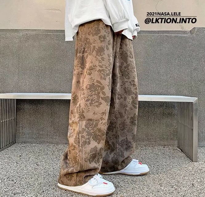 花柄ズボン パンツ ボトムスゴムロングワイド大きいサイズビッグハイウエストフラワージャージスウェット下ダンス衣装ヒップホップレディースメンズガールズストリートおしゃれレトロローズ