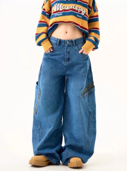 迷彩ミリタリーデニムズボンボトムスパンツジーンズジーパンストレートロングポケットダンス衣装ヒップホップHIPHOPレディースガールズストリート奇抜派手韓国ビッグ大きいサイズかっこいい