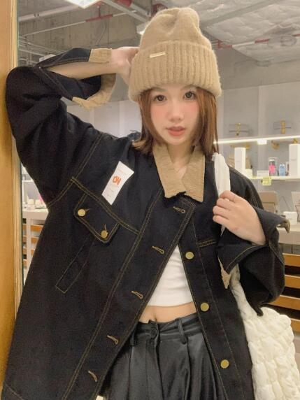ショート丈ジージャンデニムジャケット短いへそ出し長袖ジャン青シンプルボタンポケットビッグ大きいサイズダンス衣装ヒップホップレディースガールズ大人ストリートアウタージャンパー韓国おしゃれ