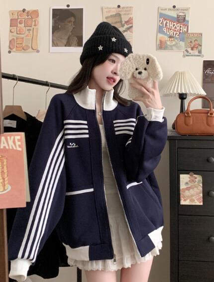 ライン刺繍スタジャンベースボールジャケット韓国系ファッション韓国ジャケットブルゾンジャンパーレディースメンズダンス衣装ダンス発表会文化祭イベント個性的奇抜ストリートアウター