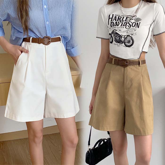 新作 春 夏 ショートパンツ 大人 女性 レディース ハーフパンツ ボトムス パンツ ワイドパンツ Aライン 上品 通勤 オフィス 発表会 入学式 旅行 ファッション ホワイト ブラック ベージェ S