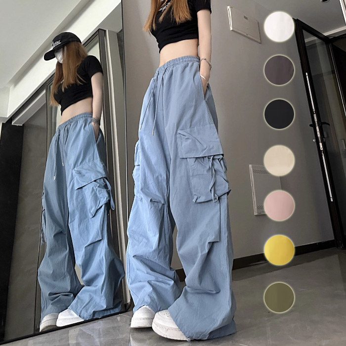 選べる8色 ファッション レディース トレンド カジュアル ストリート系 シンプル スポーティー ハイウエスト ワークパンツ ダンスパンツ 派手色