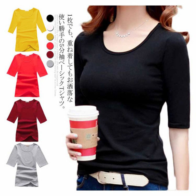 オールシーズン付けるベーシックシャツ 5分袖 カットソー シャツ トップス カジュアル タイトレディースファッション トップス シャツ カットソー