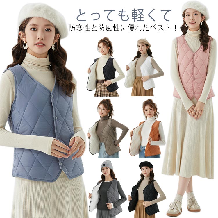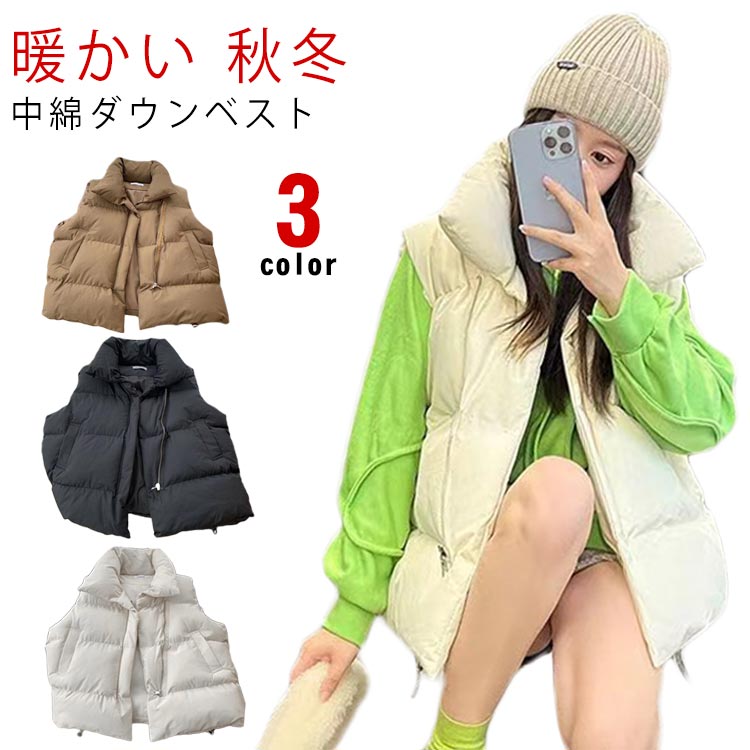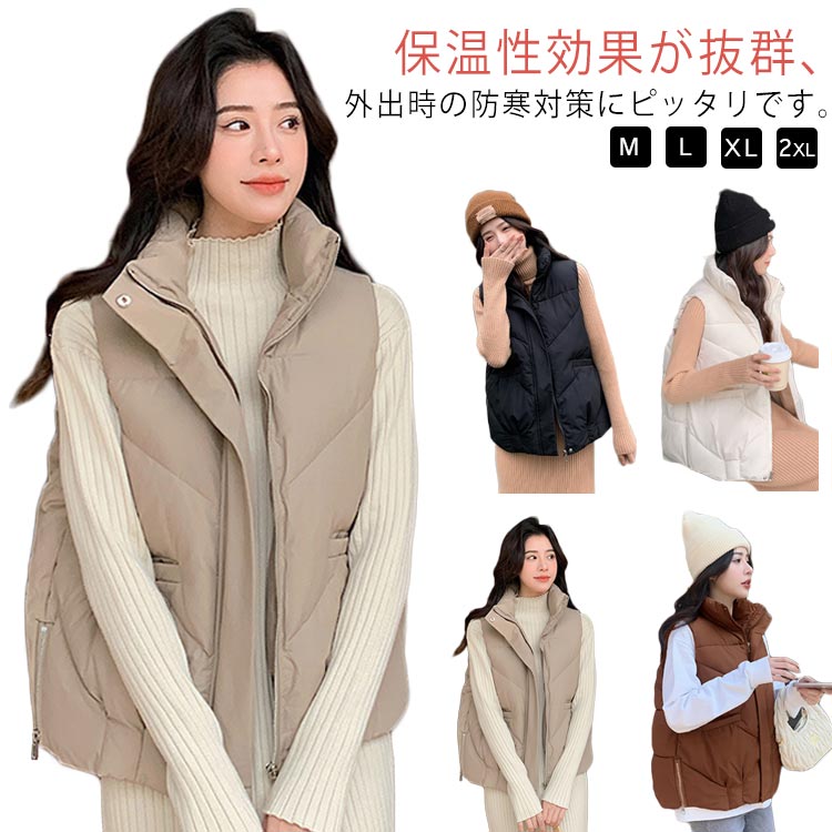 ダウンベスト ベスト 中綿 レディース ジャケット アウター 秋冬 防寒 無地 おしゃれ 通勤 通学