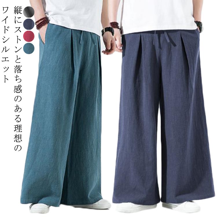 M~5XL ワイドパンツ ウエストゴム M~5XL 体型カバー 無地メンズファッション ズボン パンツ
