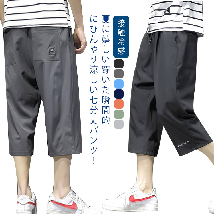 M~5XL 接触冷感 体型カバー 7分丈イージーパンツ 7分丈イージーパンツメンズファッション ズボン パンツ