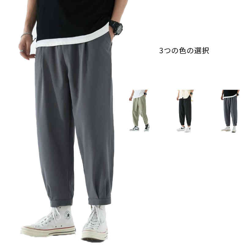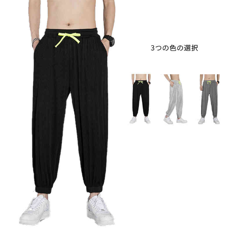 グレー 9分丈 アイスシルクパンツ 夏用 メンズ パンツ サルエルパンツ 人気 薄手 アイスシルク 接触冷感 涼しい スポーツウェア カジュアル 無地 大きいサイズ 9分 ベージュ M-4XL